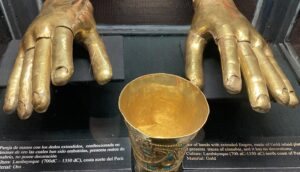 The visitors are able to view amazing objects in gold and silver that belong to 300 BC. There are artifacts that show the golden figures with turquoise on their foreheads and hands.