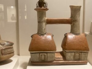 At the center of the Andean worldview is Tinkuy : the meeting of opposite forces such as day & night, woman & man, earth & sky, and it ensures the continuity of existence. In the Moche language, the word checan means love. In the museum galleries, one gallery is called Checan gallery and the potteries on display have the same theme: the symbolic and ceremonial joining of human bodies.